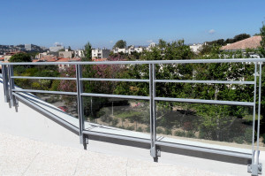 Ce Garde-corps avec vitrage entre poteaux permet de sécuriser tout en rendant stylées vos constructions.