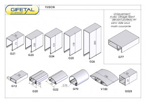 - Les montants raidisseurs doubles sont en profilés aluminium extrudés de section rectangulaire de 52 x 13 mm. Réf : RM