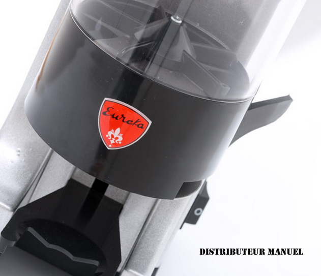 Moulin à café "Eureka" avec réglage micrométrique sans points d'arrêt, démarrage et arrêt manuel.