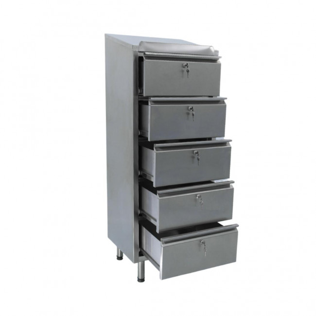 armoire inox est composée de 5 tiroirs à clé pour sécuriser son contenu.