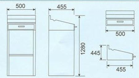 Pupitre acier inoxydable - Acier inoxydable - En option, pied pour pupitre - En option, avec plateau intermédiaire. Caracteristiques techniques: - Hauteur : 1280 mm