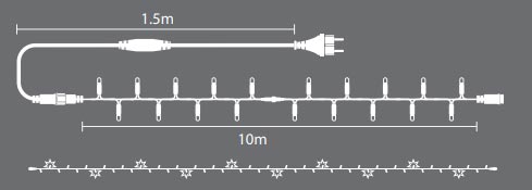 lot de 10 guirlandes de 10 mètres, avec ou sans câble d’alimentation, pour s’adapter à toutes les configurations.