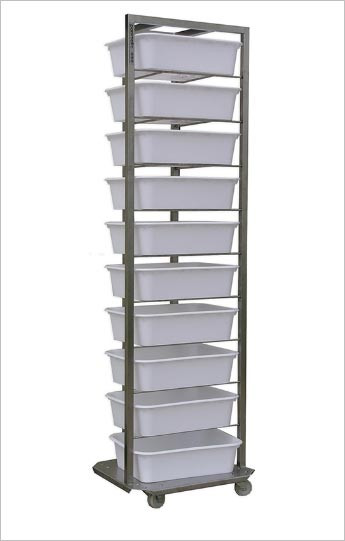 Cette echelle à bacs en inox permet de stocker et d'organiser efficacement les bacs utilisés pour la gestion des pâtes et autres produits.