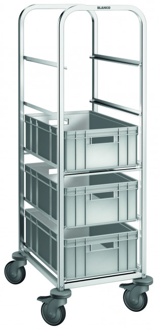 Ce chariot à glissières est conçu pour transporter des conteneurs en euros 600x400mm avec des roulettes synthétiques.