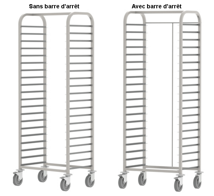 - Glissières : en inox AISI 304L épaisseur 15/10e, assemblées par cordon de soudure assurant une haute résistance (sans butées avant et arrière)