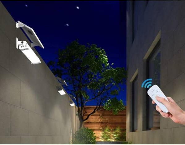 La réglette LED solaire est munie d'une télécommande pour une gestion facile de l'éclairage.