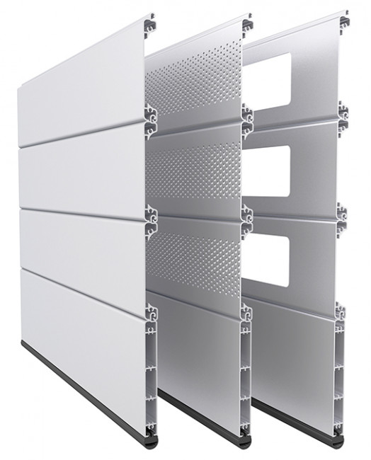 - Forment un rouleau au sommet protégé par un caisson en tôle d'acier pliée en U ou en L lorsqu'elles sont ouvertes