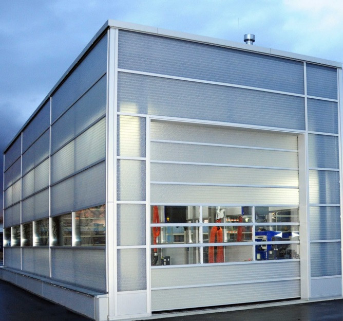Ces portes sectionnelles à empilement motorisée allient le principe d'ouverture d'une porte à panneaux articulés aux avantages de la fibre de verre.