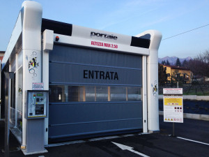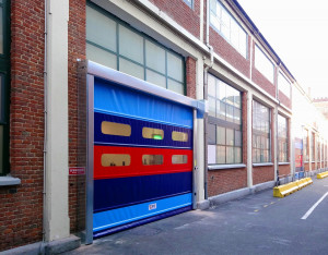 Cette porte à enroulement rapide avec traverses rigides facilite le trafic de la manutention et des véhicules.