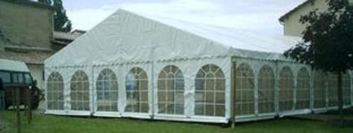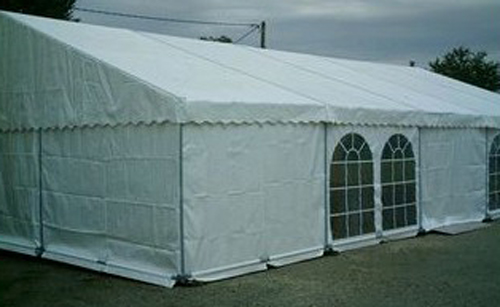 grands stands d'exposition en plein-air. Cette tente de largeur 12 mètres et longueur 5 mètres vous offre un espace de réception de 60 m². La tente peut être montée pour une courte période grâce à son montage manuel très facile qui ne nécessite aucun appareil de levage. En juxtaposant dans les deux sens les tentes largeur de 12x5 m², vous arriverez à obtenir de grandes surfaces couvertes (réception, stockage). La tente de réception couverte assure une stabilité accrue et un montage sûr en cas de grands coups de vents.