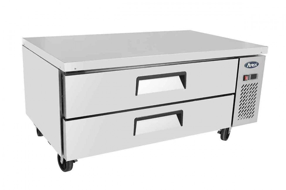 Ce soubassement réfrigéré 2 tiroirs est idéal pour recevoir des éléments de cuisson à poser.