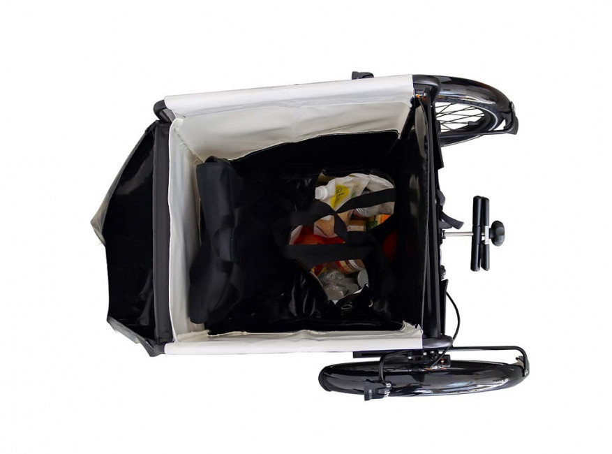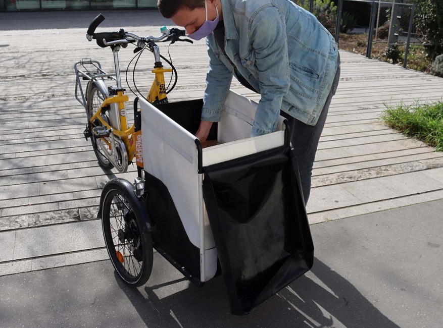 Le bac de transport remplace la roue avant de votre vélo, offrant ainsi une capacité de transport accrue sans compromettre la maniabilité.