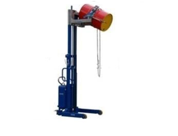 recherche un chariot élévateur basculeur de fûts. Fut acier et plastiques de 200 L ATEX 2G T4 Hydraulique, Hauteur de levée 2.5 m Milieu chimie fine commandes