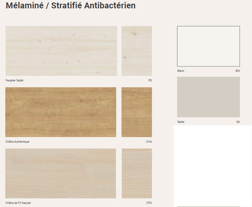 Les angles sont arrondis (rayon 25 mm) et les chants droits ABS plaqués 2 mm. Les finitions sont renforcées pour éviter les chocs. |
