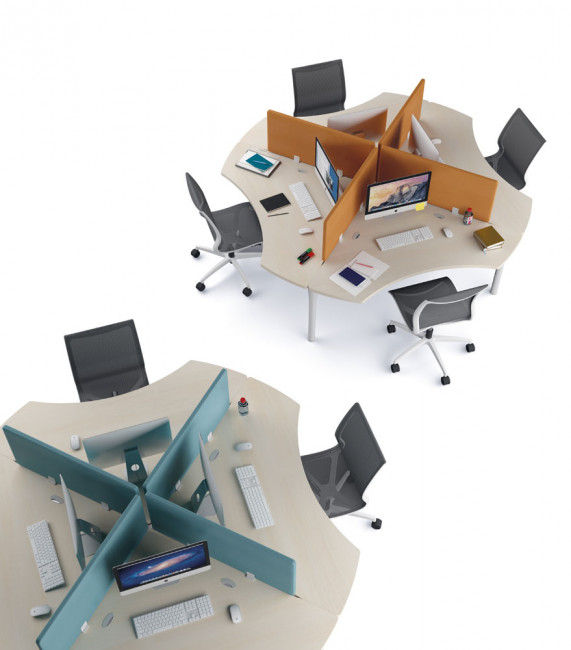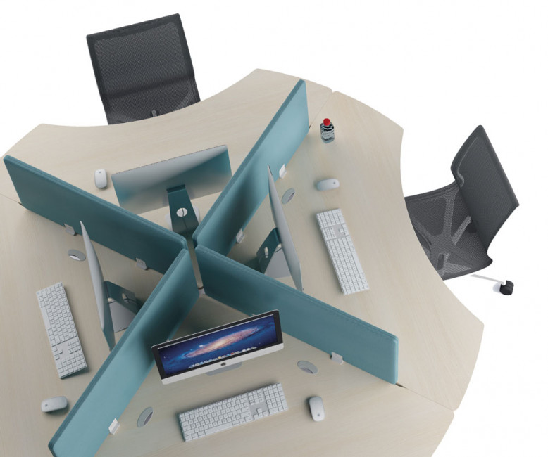 Ce bureau marguerite 4 personnes est configuré de façon à ce que quatre postes de travail sont disposés en étoile.