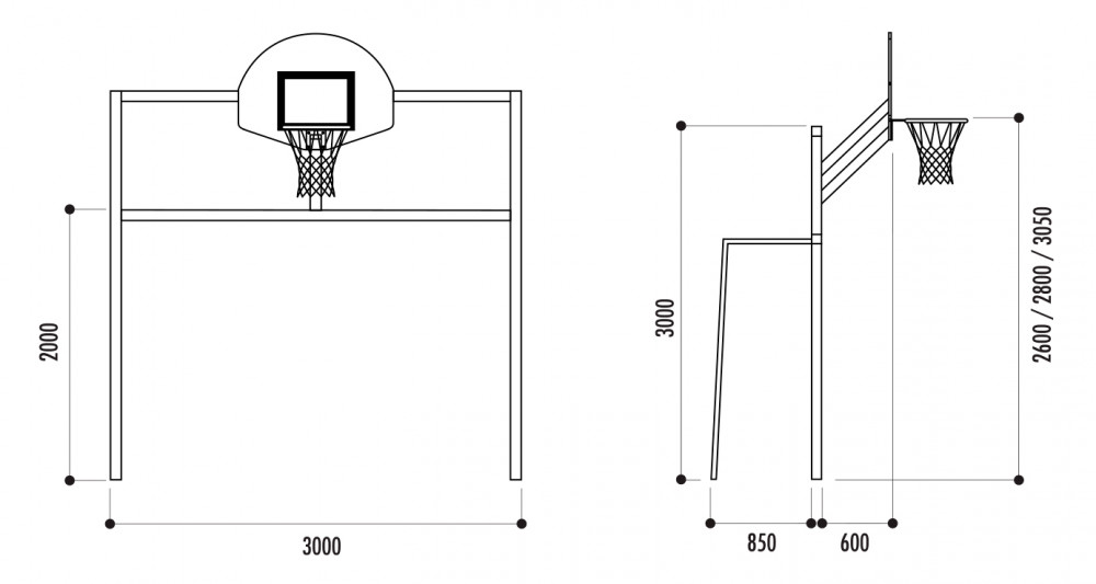 - But de basket, hauteur panier : 260, 280 ou 305 cm