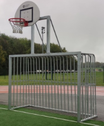 - La structure du but de basket, à une hauteur de 3,05 m, est placée sur le dessus du but.