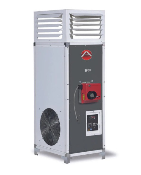 Ce chauffage à air pulsé fixe au fioul est un système de chauffage qui utilise le fioul comme source d'énergie pour produire de l'air chaud et le diffuser dans le local à chauffer.