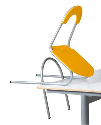 Avec son système d’appui ou de bascule sur table, la chaise appui sur table ZANA facilite grandement le nettoyage des locaux.