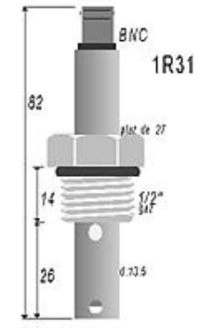 Le câble coaxial débrochable en standard est de 3m (sur demande la longueur peut être ajustée). Sur la sonde 1R31-CT, un capteur de température type PT100 permet la mesure de la température.