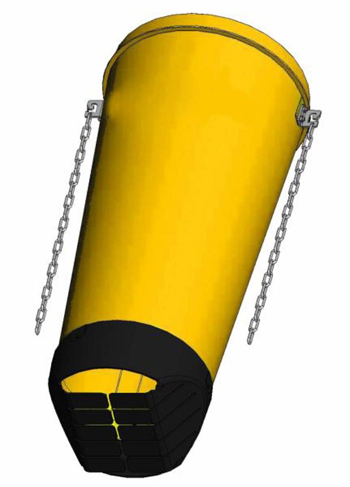 •   DES GOULOTTES À GRAVATS AVEC CHAÎNES.