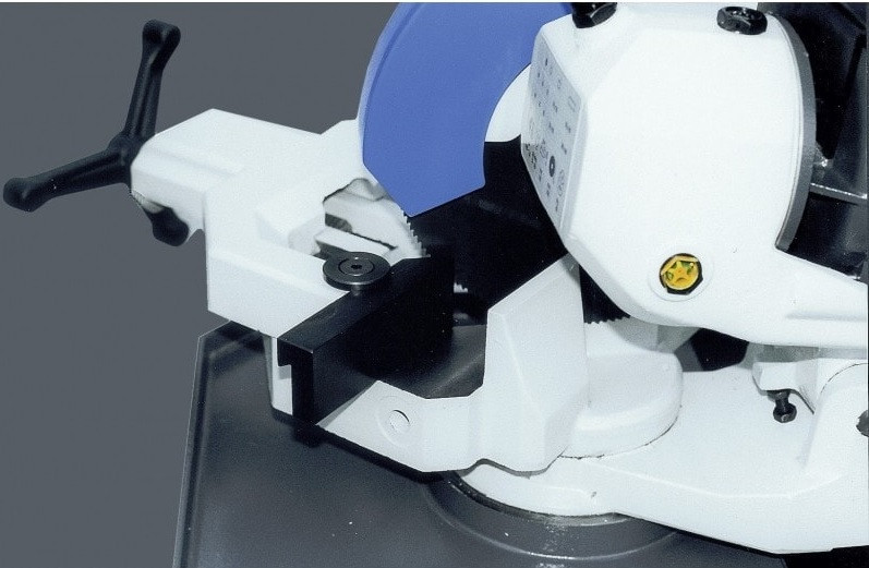 La tête pivotante à ± 45° sur la gauche et la droite, ainsi que l'étau pivotant à ± 45° sur la gauche et la droite avec dispositif anti-bavures, offrent une flexibilité exceptionnelle pour des coupes précises et nettes dans différentes directions.