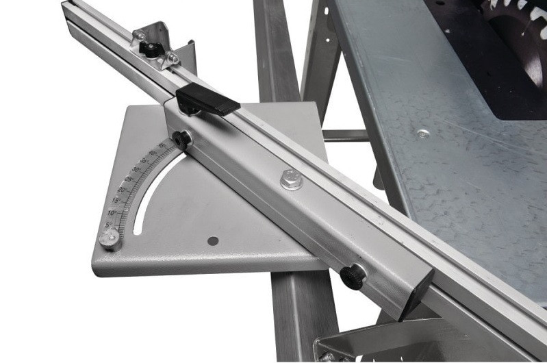 - Chariot monté sur roulement à billes avec butée réglable et guide coulissant pour des coupes précises et sécurisées