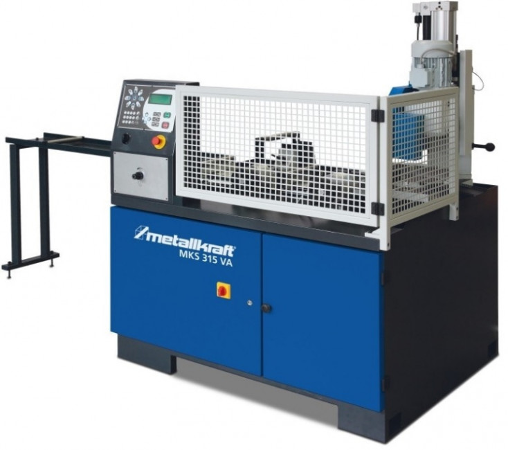 La scie est livrée avec un étau à serrage pneumatique à coulissement transversal, un dispositif anti-bavures et un brise copeaux pour une utilisation pratique.