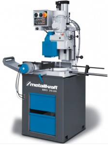 La tête de machine est guidée verticalement, avec un système de guidage en queue d’aronde et un lardon conique réglable, permettant un contrôle précis de l'angle de coupe, pivotant à - 45° et + 60° avec blocage à -45°, 0°, 45° et 60°.