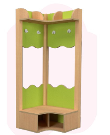 Le vestiaire d'angle 2 enfants permet d'accueillir 2 enfants dans le coin d'un espace d'accueil.