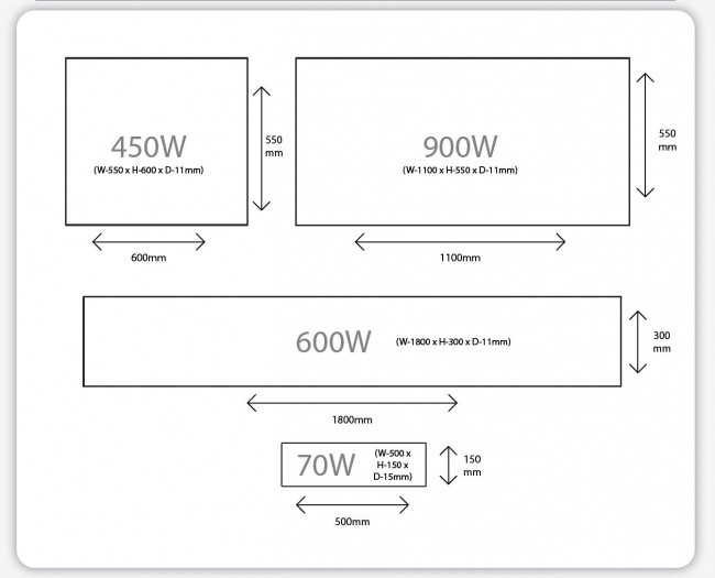 Disponibles en verre noir ou blanc, ils mesurent 550 x 600 – 550 x 1100 et 300 x 1800 génèrent un environnement de chauffage sain et confortable.