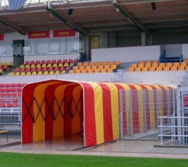 Nous aurions besoin d"un tunnel de +- 5 mètres de long pour protéger nos joueurs à la rentrée aux vestiaires.