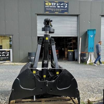 Pour vos interventions avec mini-pelles, nous proposons une benne preneuse chantier type Poclain adaptée aux machines de 5 à 6 tonnes.