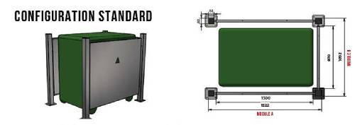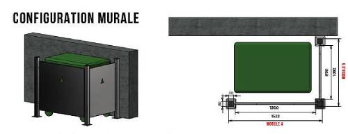 Le cache conteneur est disponible en version standard ou murale , permettant ainsi de l'adapter à vos besoins spécifiques. Il peut être installé sur un mur ou en configuration sur pied , selon l'espace disponible et l'environnement.