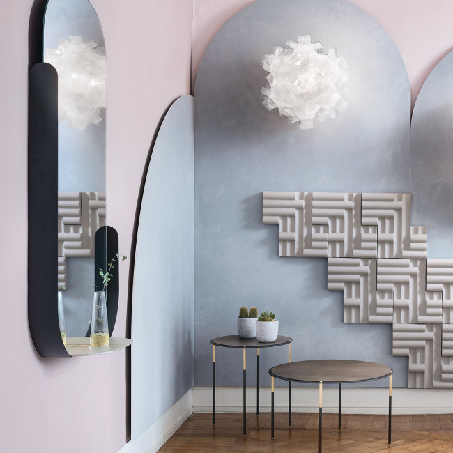 Le design Clizia Pixels est inspiré de la nymphe grecque reniée par le soleil qui se transforme en héliotrope. De plus, il est fabriqué en Cristalflex® de la marque SLAMP et intègre un système d'ancrage magnétique qui facilite l'installation et entretien.
