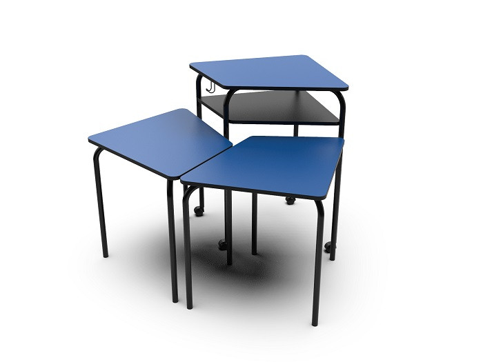 La forme innovante du plateau permet différentes compositions : les tables peuvent être utilisées en ligne ou regroupées par 3, 4 ou 5 (ou plus) pour former des groupes cohérents, s’adaptant ainsi aux différentes méthodes pédagogiques.