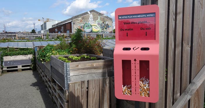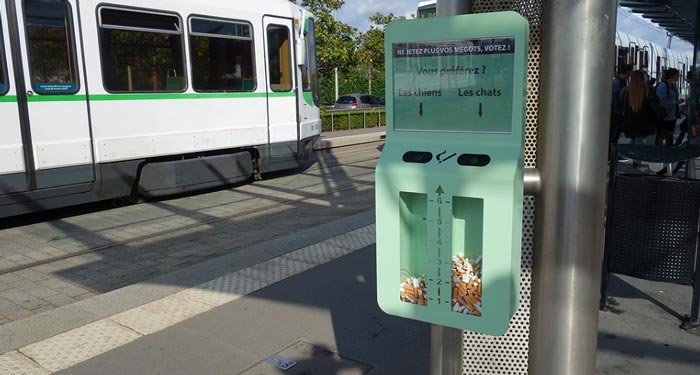 nous somme a la recherche d"un cendrier sondage pour insité les fumeur a mettre leur mégot en cendrier
