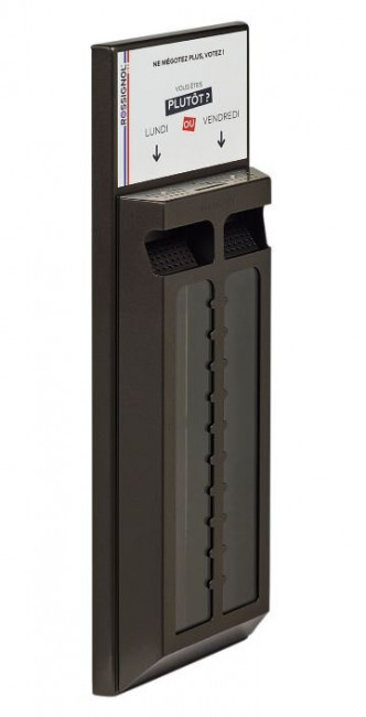 06/10/2025Bonjour, Nous sommes à la recherche d"une solution pour optimiser la propreté de notre espace extérieur ou de notre zone fumeur, tout en encourageant une démarche interactive. Nous souhaitons acquérir un cendrier de collecte moderne qui sert également de cendrier de sondage (ou cendrier participatif). L"objectif est d"assurer la gestion des mégots de manière hygiénique tout en permettant aux utilisateurs de voter ou d"interagir facilement. Nous recherchons un dispositif qui soit à la fois : Pratique et Hygiénique pour la collecte des mégots. Interactif (permettant un vote visuel simple). Design (esthétique moderne) et Solide (résistant aux intempéries si en extérieur). Facile à Vider et à Nettoyer. Faites-nous part de vos meilleures propositions de cendriers de sondage professionnels, en détaillant le mécanisme de vote et la capacité de collecte.