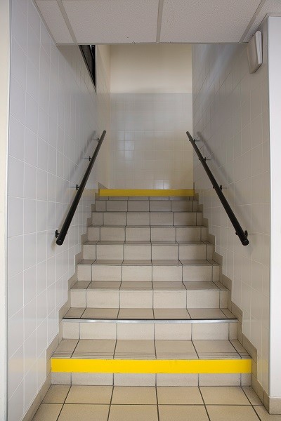 Il est obligatoire que la première et la dernière marche soient contrastées visuellement sur une hauteur de 10 cm.