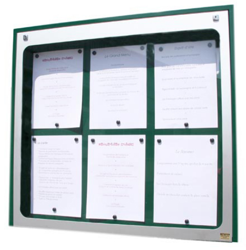 Ses vitres sont en plexiglass avec fermeture à clés, elle est livrée avec aimants pour fixation des feuilles.