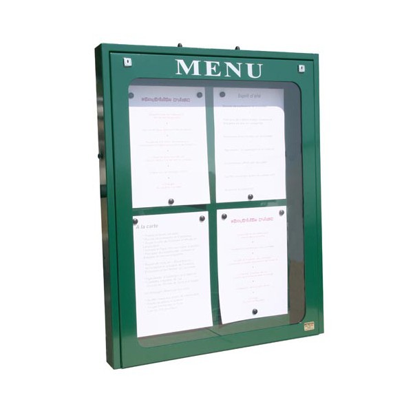 Ses vitres sont en plexiglass avec fermeture à clés, elle est livrée avec aimants pour fixation des feuilles.