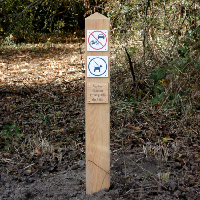 Son aspect naturel s'harmonise avec les environnements paysagers tout en remplissant efficacement sa fonction de jalonnement.