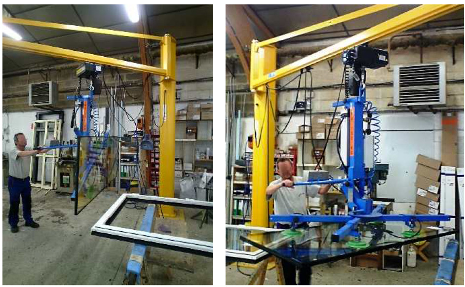 Afin de s'adapter aussi bien aux petits qu'aux grands formats, cet appareil de levage est équipé de ventouses réglables sur un châssis en X.