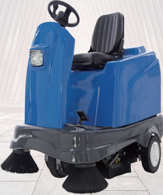 Cette balayeuse autoportée compacte permet de nettoyer les sols durs et souples.