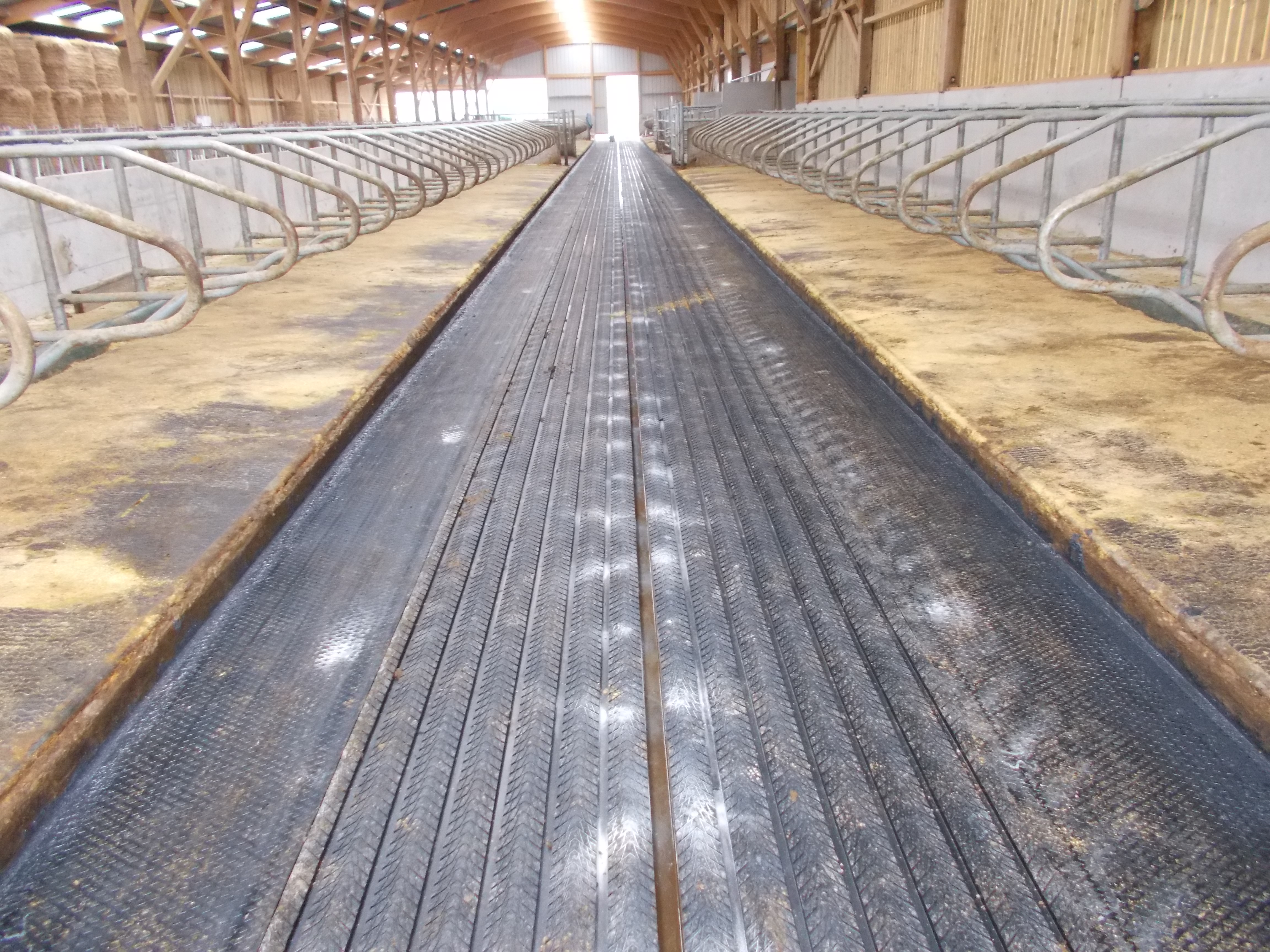 4 % de pente sur 60 cm sur la zone précise où l'animal en a le plus besoin (Au niveau des pertes de lait).