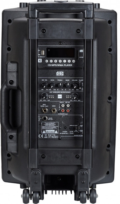 Cette sonorisation portable intègre une batterie qui vous donne une autonomie permettant ainsi de se passer d’une alimentation secteur.