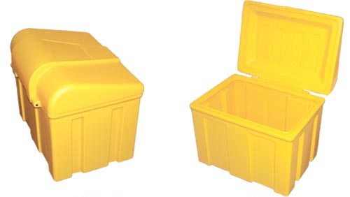 - Bac de rangement multi-usages pour le stockage en intérieur ou en extérieur du sel de déneigement, du sable, de l'absorbant, des E.P.I, des kits antipollution ou divers outillages.