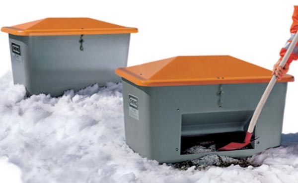 - Notre bac à sel peut être placé sur les parkings, sites industriels, aéroports, stations services, aux abords des routes, voies piétonnes…