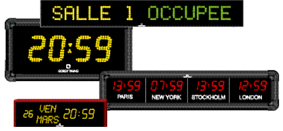 Afficheur 2 lignes, 18 à 20 caractères, hauteur lettre :3 à 5 cm, configuration par réseau TCP/IP.