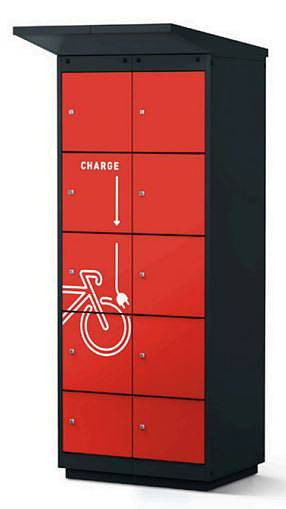 8 casiers multiutilisateur (à code ou connecté) recharge de batteries de vélos et stockage casque et gilet